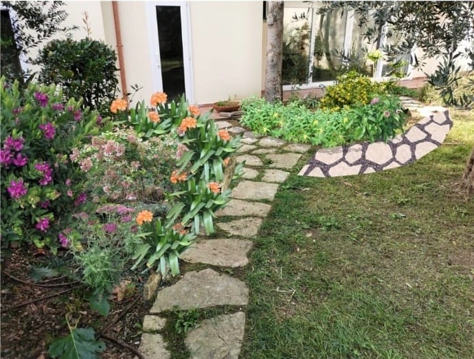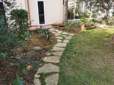 Poi, grazie al nostro progetto personalizzato, abbiamo ricreato un camminamento armonioso, studiato al computer per integrare materiali e stile già presenti nel giardino